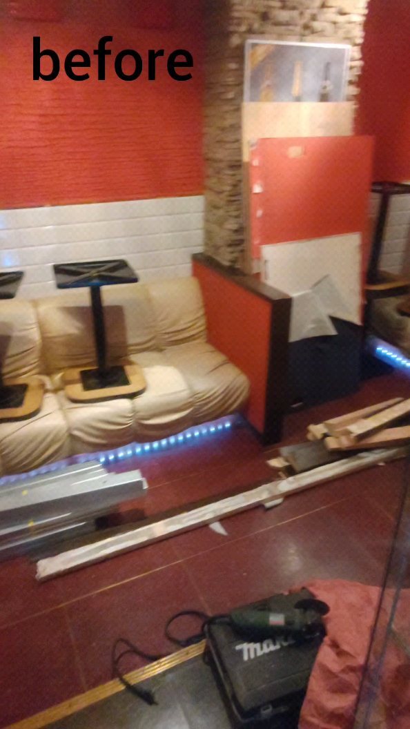 壁が全面ガラスの糊付けだったためまずはガラス割りからです😅