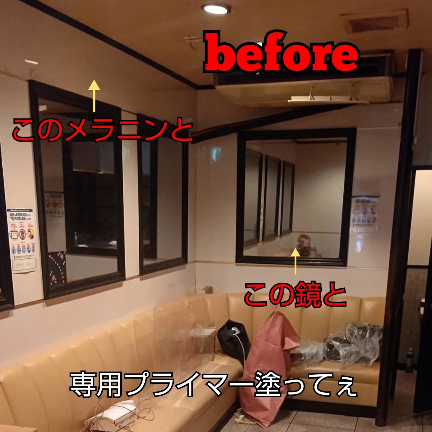 解体箇所を最小限にして壁やガラス・鏡は特殊塗料を使ってイメージチェンジです🌈